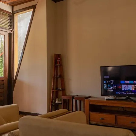 Casa Nautica Pipa Natureza-Piscina Privativa-089B는 안락한 숙박을 위해 실내 온도 조절기, 실내 온도 조절기, TV가 있는 방을 제공합니다.